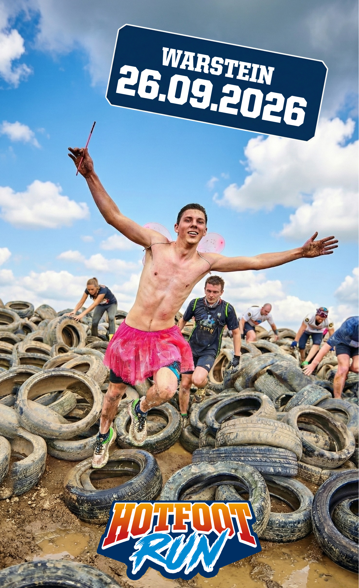 Der Hotfoot Run verspricht sportliche Herausforderung mit Teamwork, Schlamm, Wasserrutschen, Schaum und ganz viel Spaß!